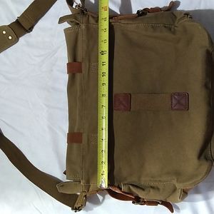 NEW S.C.Cotton Super Spacious Army Green Tan Canvas Leather Trim Messenger Bag