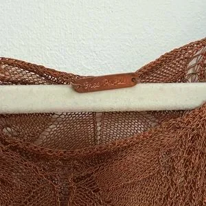 Bought this as a sample piece, don’t know if it was ever made into a free people dress. Beautiful rust colored crochet dress. Sheer with a high side slit. Fits an xs-s, but is very stretchy. Such a unique piece!