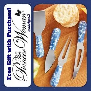 🌺 NWT The Pioneer Woman Blue Heritage Floral Cheeseboard Knife Serving Set