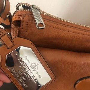 Crafted from classic leather, removable “ Ralph Lauren tag”, slip pocket and zip pocket at the interior.