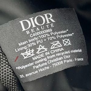 ✨New, authentic Dior cosmetic pouch from Dior’s beauty line. Black body fabric made from recycled fabric, center CD logo, silver-tone hardware & top zip w/Dior zipper pull. Petite & mighty!