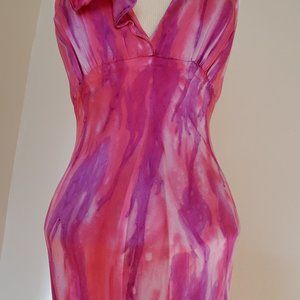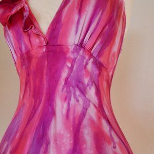 Silk ruffle Short Dress 4 6 8 bridesmaid party tie dyed painted purple pink blue