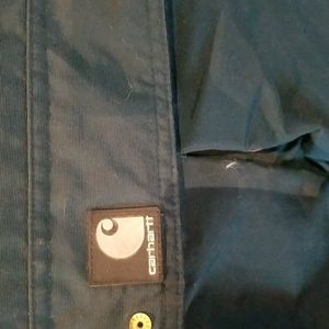 Men's Carhartt Forest Green Jacket multiple pockets sz XL. Like new condition on pockets missing the green cover on snaps doesn't affect ability to snap. Beautiful coat. Measurements neck to hem 35"chest pit-pit 26" sleeve 24". Pocket on sleeve 2 chest zippered pockets two waist pockets. lined and heavy quilted jacket. Bundling Available