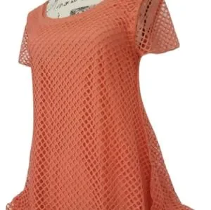 Womens sz Large Coral color Lined Net coverup swimsuit poolside Beachwear