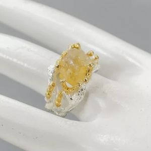 COPY - Large raw natural Citrine solitaire sterling ring sz 7
