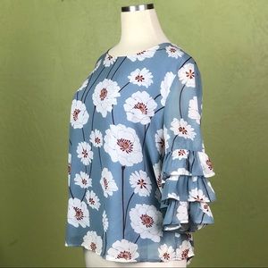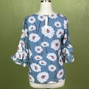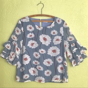 LUCCA Dusty Blue Blouse with Tiered Ruffle Sleeves
