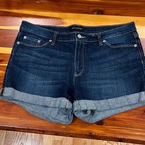 Dark stretchy denim shorts with roll up cuffs, size 12.