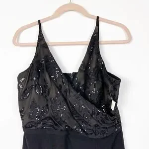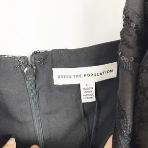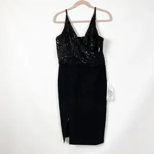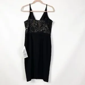 Dress The Population Womens Giulia Sequin Crepe Dress Large Black NWT.