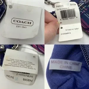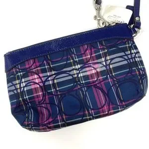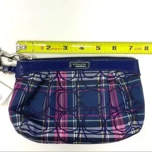 Coach Tartan Print Pleated Patent Trim Wristlet