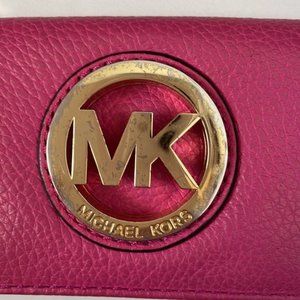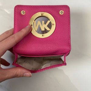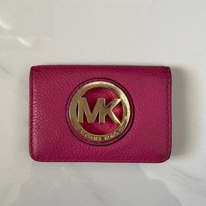 Michael Kors Pink Leather Mini Card Holder Wallet with Gold Hardware Logo