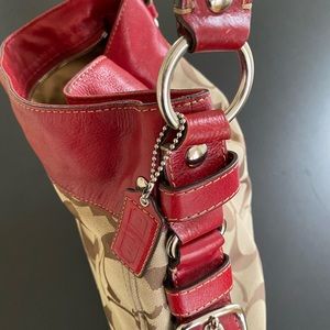 Signature Coach bag with red leather trim.