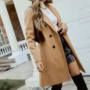 Cozy Camel Tan Button up Double Breast Pea coat Jacket