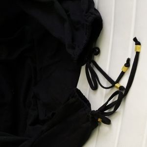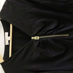 this MK block long sleeve shirt is a great way to elevate any pair of jeans. ruching around the zipper up the front and super cute ties around the 3/4 sleeves with little square gold details