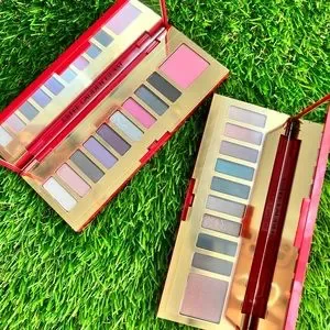 Each palette has 9 eye shadows and one blush.