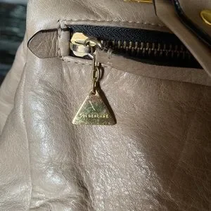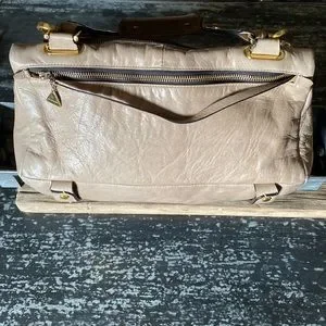 This is very similar to the Givenchy Pandora bag. Taupe in color with gold hardware and black trim zip. $800 bag!