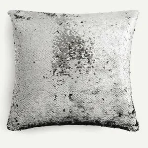 New. Soft on the back. zipper. 18 by 18 inches. silver and black sequins.