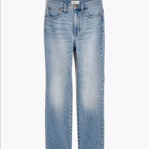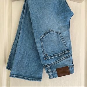“Easy through the (high) waist, these light-wash jeans have a straight leg with a subtle flare at the hem for the longest, leanest look. A cool fit with a vintage feel. 10 3/4" high rise, fitted through hip and thigh, 14 3/4" kick out leg opening, 26" cropped inseam. Do Well: We partner with the Better Cotton Initiative to improve cotton farming globally. Premium 98% cotton/2% elastane Candiani denim. Magic Pockets. Machine wash.” // Gently worn a handful of times. Great condition.
