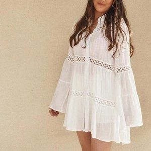Bell Sleeve Layered Cover Up with Circle Lace Insert