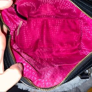 Super cute medium size black leather kate spade bag with bow and classic pink ks material inside