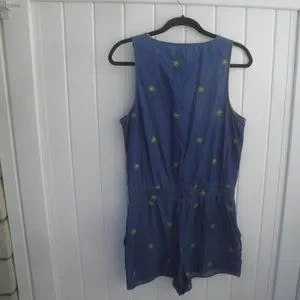 Splendid Gray Malin 100% Cotton Romper Embroidered Printed Romper Blue Med