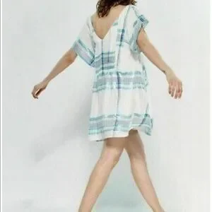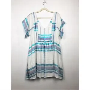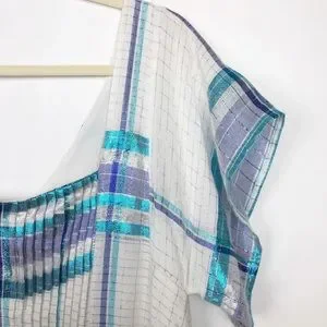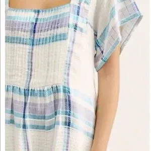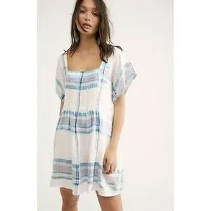 Free People Mini Dress White Blue Metallic Plaid S