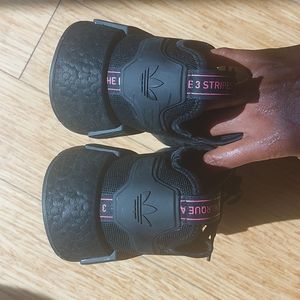 womens NMD_R1 Primeblues. All black with pink trefoil and back tab detail. Like new condition still has new sneaker smell. Worn once MAYBE twice. Tiny sign of wear on the back left shoe. I won't charge full price because of this. Box included.