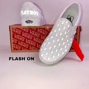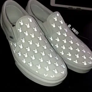 Checkerboard Reflective Playboy bunny slip-on vans