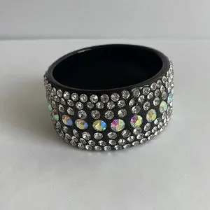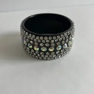 It’s Raining 🌧 Rhinestones Bejeweled Bangle bracelet. The black background makes the rhinestones sparkle and stand out. Great bejeweled bracelet. Nice piece to add to your jewelry collection. All stones intact. Matching ring listed separately.