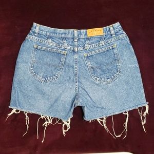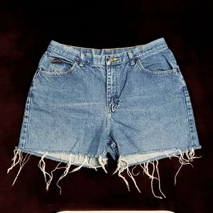 Vintage Plus Size Lee Riders Cut-Off Distressed Raw Hem Denim "Mom" Jean Shorts