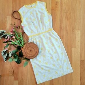 🐥 VTG Yellow & White 2-Pc Embroidered Dress Jacket Set Sz M