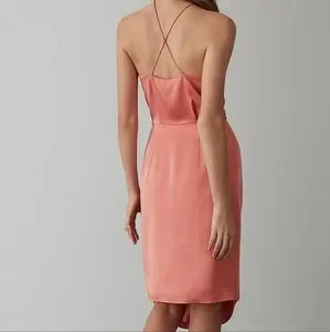 #pink salmon peach summer spring garden bridesmaid wedding guest cocktail semi formal black tie gno date night past knee length cruise vacation evening wear special occasion