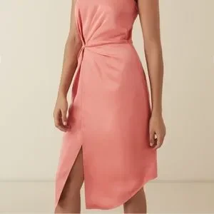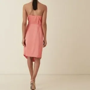 The Paola halter-neck dress in coral is an elegant piece that will lend itself well to a variety of invitations come events season. It's designed with a halter neckline and it has a modern hardware and twist-front detailing that adds subtle interest to the otherwise simple silhouette. Style with barely-there heels and a clutch bag.