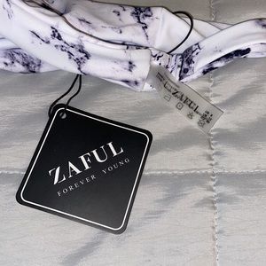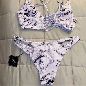 Zaful Bikini Size Large Black & White Marble Adjustable Top & Cheeky Bottom