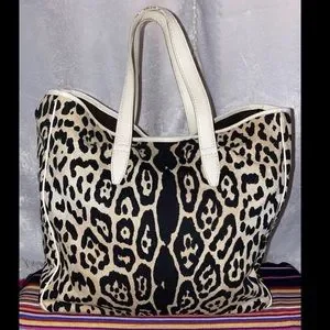 Vintage Yves Saint Laurent YSL Snow Leopard Print Maxi Tote Bag Rare