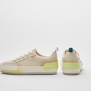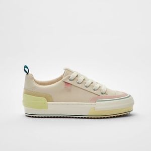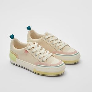 NWT Zara Girls Patches Lace Up Cotton Sneaker