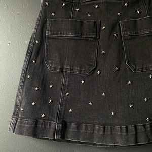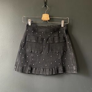 Madewell Stretch Denim A Line Mini Skirt Star Stud Edition Black Sz 0