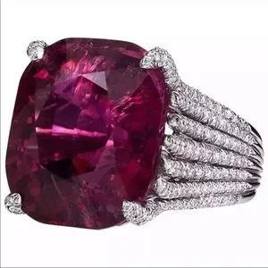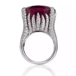 New Women’s Vintage Silver Geometric Big Stone Red Zircon Ring