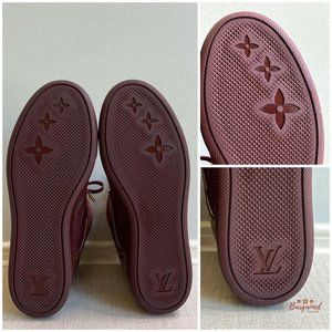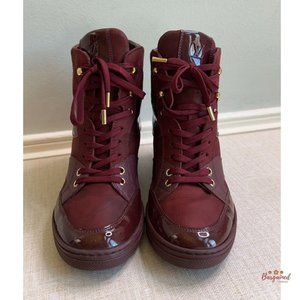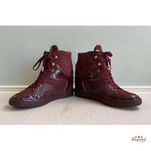 Authentic LOUIS VUITTON Bordeaux Monogram Suede Leather Cliff Top Wedge Sneakers 38/8