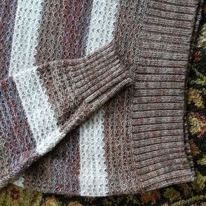 This cozy sweater is vintage Kennington featuring a beautiful blend of red, brown, cream, and blue threads.