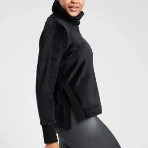 Athleta Double Cozy Fuzzy Funnel Neck Sweatshirt / Sweater | Black | Women’s XXS
