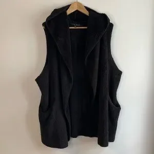 Honey Punch black sherpa faux fur vest with hood and open pockets. Super soft and stretchy. Tagged size M/L. Great used condition.
