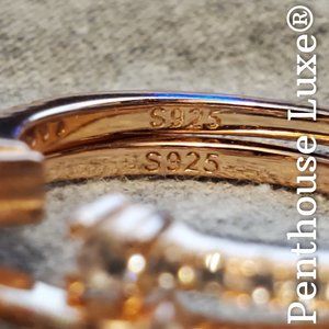 Breathtaking authentic color changing alexandrite set. All photos are real and unedited. SOLID 925 sterling silver with 18k rose gold overlay & white A5 cubic zirconias (the highest possible rating). Both stamped "S925". High quality emerald green in sunlight (not pictured). Genuine lab created alexandrite.