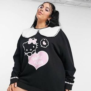 Slouchy sweatshirt by NEW girl ORDER, created in collaboration with Hello Kitty. Features a crew neck, drop shoulders, long sleeves and Hello Kitty graphic, topped with an oversized Peter Pan collar and lace details