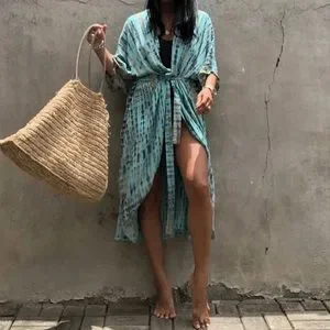 Turquoise Tie Dye Boho Swim Coverup Kimono Robe
