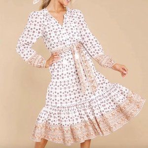 SOLD 🛍 NWT CLEOBELLA Blakely White Neutral Floral Midi Dress size XS MSRP $258