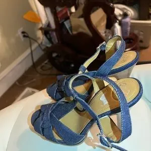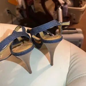 BCBG BCBGeneration T strap Stiletto denim Leather 37B CLASSIC Pump.