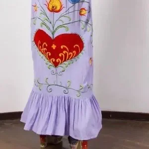 5 Star ⭐️ Maxi Dress Kimono Bohemian Embroidered Lilac Hearts Magic Gown, NOW IN