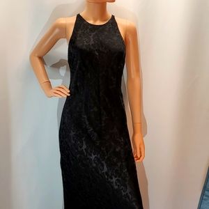 Gorgeous black slip on prom/cocktail/ special occasion dress. The dress has a low cut back with criss cross straps. Fully lined beautiful fabric. m203178