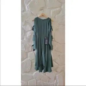 Bcbgmaxazria Cicely Satin Green Slit Sleeve Dress 0