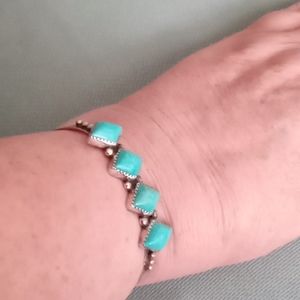 Easy to adjust. Just bend the side's only, holding down the Turquoise with your thumbs.